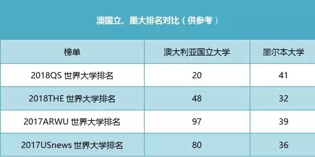 澳国立和墨大在这四份榜单中的最新排名是怎样的呢?