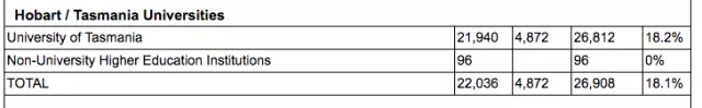 25.University of Tasmania 18.20%