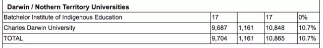 35.Charles Darwin University 10.70%