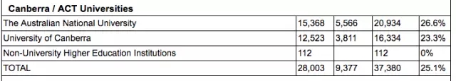 18.University of Canberra 23.30%